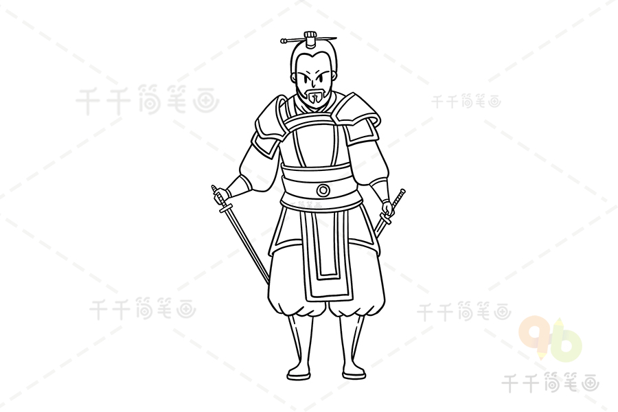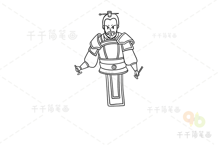 战国名将白起简笔画彩色,历史人物简笔画,古代人物图片,人物简笔画大全