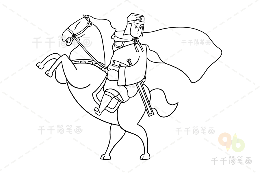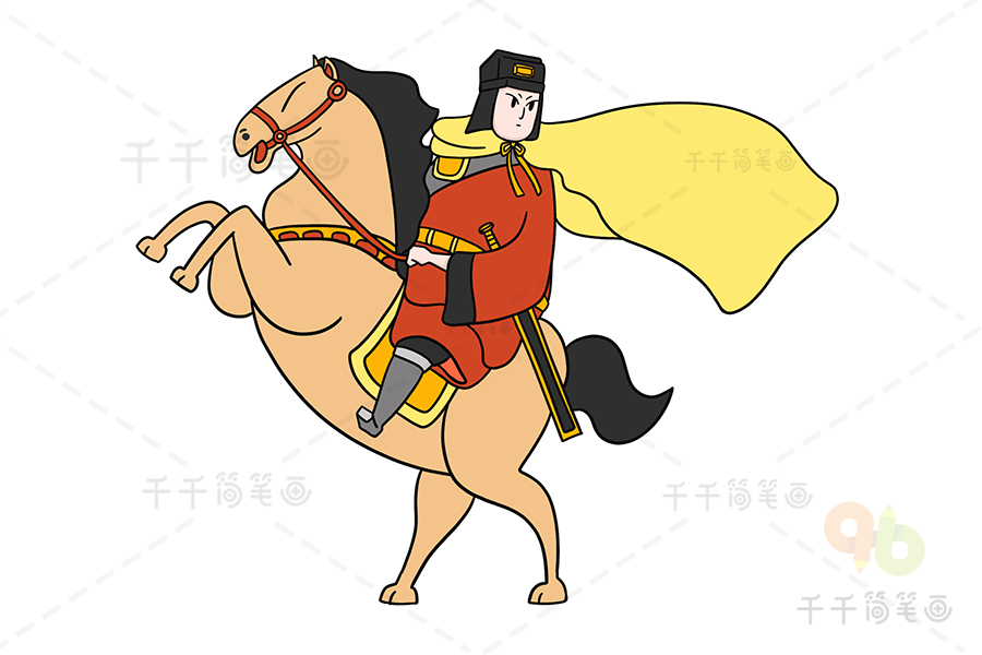 霍去病简笔画彩色,霍去病简笔画步骤图,霍去病简笔画大全,古代人物简笔画