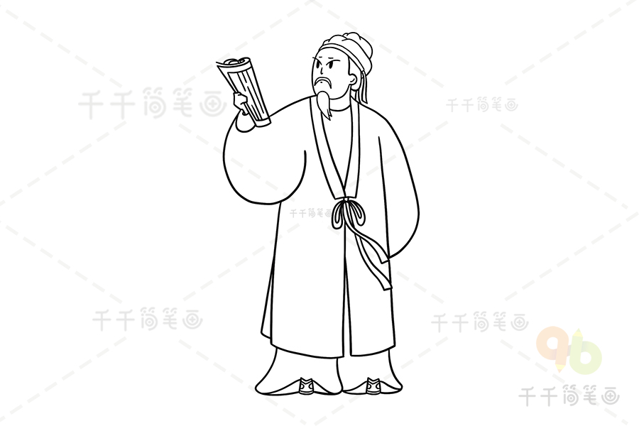 关汉卿简笔画教程,关汉卿简笔画,关汉卿简笔画图片,古代人物简笔画