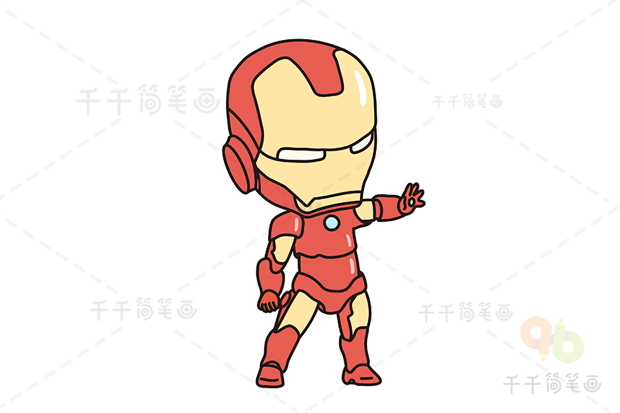第五步:为钢铁侠涂上颜色,钢铁侠简笔画就完成啦!钢铁侠简笔画教程