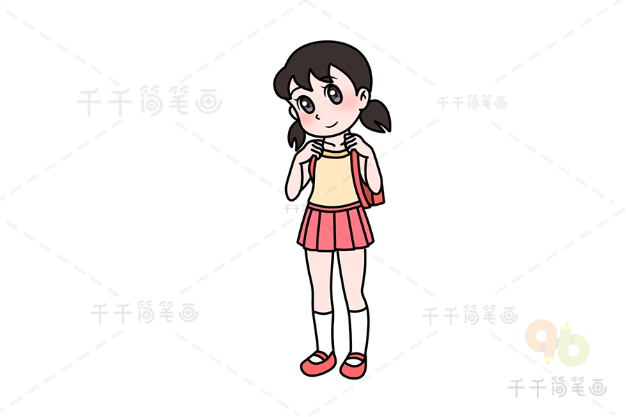 第六步:涂上颜色,静香简笔画就完成啦!哆啦A梦 静香简笔画图片
