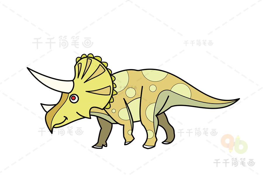 幼儿恐龙简笔画图片,今天教大家画恐龙中的三角龙,喜欢就跟着画一画吧!876526 -